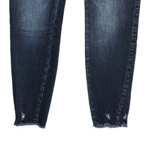 Experience the perfect blend of style and comfort with these Kancan women's skinny jeans. Tailored to flatter your silhouette, these jeans feature a mid-rise waist, classic 5-pocket design, and a versatile dark blue wash that transitions effortlessly from day to night. The cropped inseam with a raw hem adds a trendy touch, making these jeans an essential addition to your denim collection.