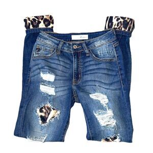 Kancan Womens Vienna Mid Rise Leopard Patch Super Skinny Jeans
