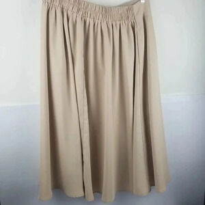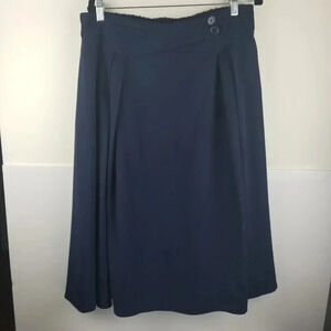 Kancy Kole high waisted skirts. Bundle of 3. Beige, Navy blue, and Green. Great for work, office, date night, shopping , vacation, school, business, party, or any occasion. Skirts are below the knee. Waist 16.5" and Length 28". 98% Polyester and 2% Viscose. Button detail to waist with small pocket. Beige skirt has a light blue stain on the back. See photos. Otherwise, skirts are in good pre-owned condition.