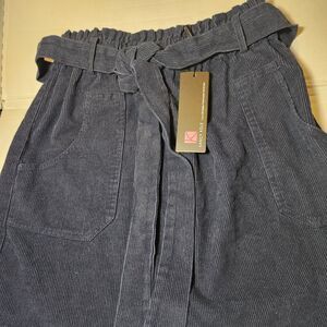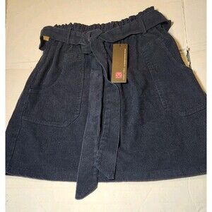 Kancy Kole Corduroy Paper Bag High Waist A Line Mini Skirt Size M Navy Blue NWT