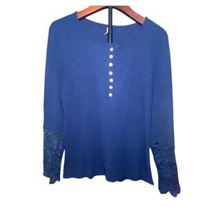 Kancystore Blue Long Sleeve Lace Cuff Top Waffle Knit Button Henley Womens XL