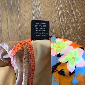 Kandi Kouture Orange Floral Leopard Print Mesh Panel Dance Leotard Size TM. Very good condition with a minor loose thread at back waist hem. Easy fix if you sew. See last photo. Only worn once at convention. Definitely an eye catcher! From smoke free home. * no other items in stock photos included. Leotard only.