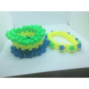 I use neon green, neon yellow and neon blue pony beads and black pony bead stars.