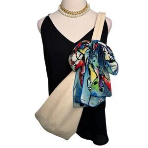 Looks fantastic any way you wear it - neck scarf, foulard, scarf top, or to decorate your handbag