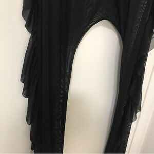 Kandyshop black sheer mesh swim cover up ruffle side leggings