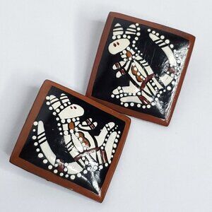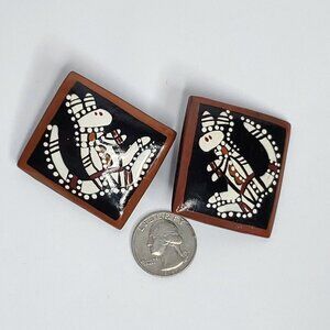 Kangaroo Earrings Australia Aboriginal Tribal Hand Painted Wood Brown Black