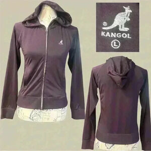 Kangol Active Wear Full Zip Jacket w/Hoodie Womens Large Stretch Athleisure Gym Casual
