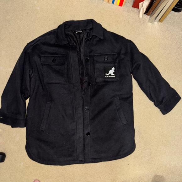 Textured black jacket/Shacket Kangol X H&M. Comfortable and stylish design. Very oversized could easily fit an XL. Minimally worn.