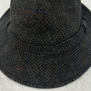 Features: Buckle accent on hat band, classic heritage tweed, lined interior, short brim