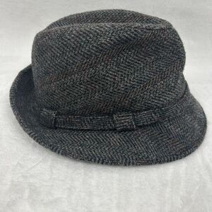 Kangol Hat Fedora Vintage Mens Medium Gray Herringbone Wool Lined Union Made USA