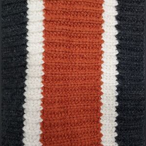 Charcoal, cream and rust striped.