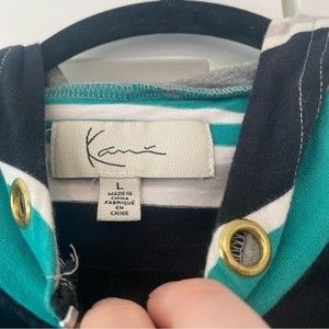 Kani size Large 80s style Surfer Stripe Kangaroo Pocket Cover Up Hooded T Shirt