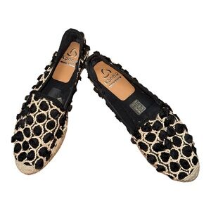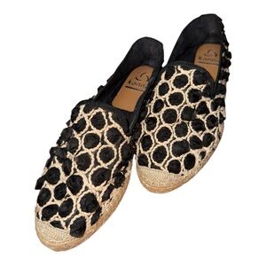 Kanna Black and Cream Espadrille Shoes with Circular Pattern
