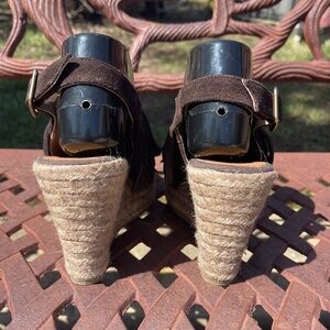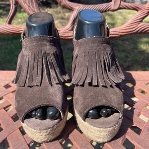 💋Kanna Brown Suede Leather Fringe Slingback Platform Wedge Open Toe Sandal