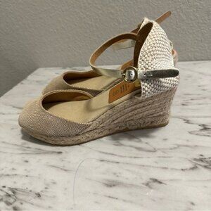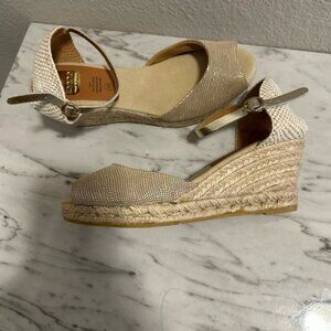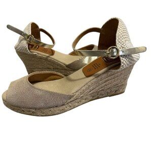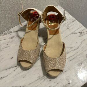 Kanna Espadrille Womens Wedge Peep Toe Gold Ankle Strap Sandals Sz 10