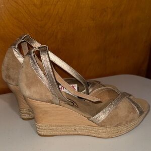 Kanna Metallic Gold and Tan Espadrille Wedges NEW size 9