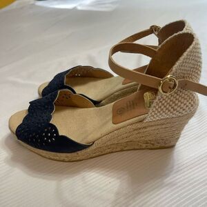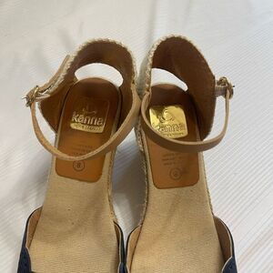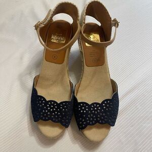 Kanna Spain Navy Blue Espadrille Wedge Peep Toe Sandal sz 8