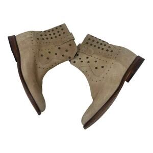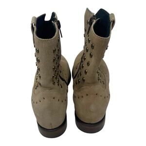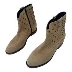 Kanna Studded Suede Ankle Boots Beige Leather Western Style Size 38/8