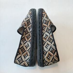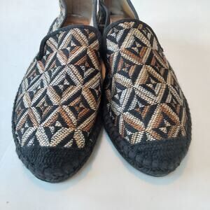 Kanna Sz 7 Woven Espadrille Loafer Black Diamond Pattern Slip On Flat Brown Tan