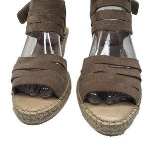 Kanna Tan Suede Espadrilles Wedge Sandals Size 9.5 41 Ankle Strap