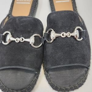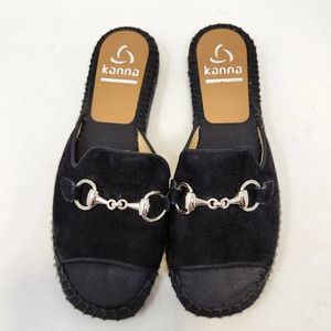 Kanna Womens Black Suede Espadrille Slides Sandal 38 US 7.5 Flats Open Toe