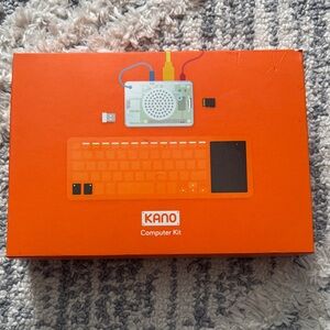 Kano Computer Kit with vibrant orange packaging. Includes keyboard and components.