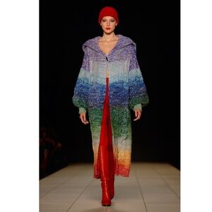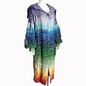 Kansai Yamamoto Rainbow Knit Sweater Long Maxi Duster Vintage 1970s Rare Glam