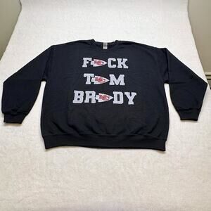Kansas City Chiefs F%*K Tom Brady Arrowhead Logo Crewneck Sweatshirt Black XL
