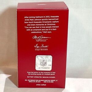 Plays signature sounds of the game. Press the button on the ornament to hear the exciting sounds of a football game.