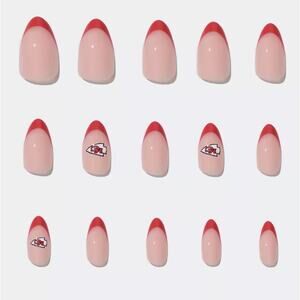 Kansas City Chiefs Press On Nails by Glamnetic! Featuring a combination of Red French tips and nails with the Kansas City Chiefs logo for the ultimate fan. Glamnetic nails are made with high-quality materials, will stay on for up to two weeks, and are affordable.