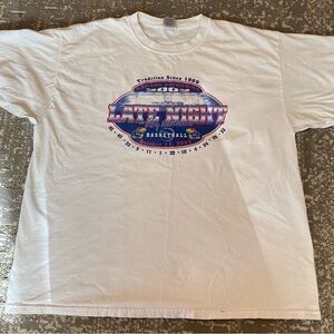 Kansas Jayhawks 2002 Late Night Short Sleeve size 2XL color White-Flaws