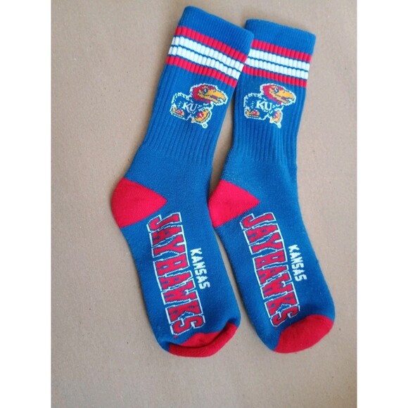 Kansas Jayhawks Blue & Red 4 Stripe Crew Socks