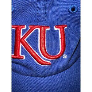 Show your support for the Kansas Jayhawks with this blue, unisex adult cap. The cap features an embroidered design the Classic KU letters in Red. On the left side is a round Jayhawk Emblem with the wording “Williams Education Fund” and ‘Kansas Athletics”. On the back of the cap are the embroidered words stating WilliamsFund.com and has Williams Education Fund on the Metal Buckle. This hat is completely adjustable. It a perfect accessory for college sports fans. It is one size fits all, so anyone can wear it comfortably during the regular season games. Rock Chalk Jayhawks.