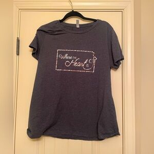 Grey with rose gold screen print Kansas shirt (fits like a L/XL)
