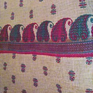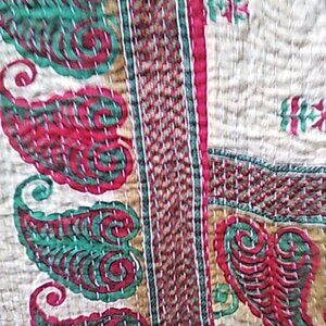 Kantha Quilt Christmas Red Green Paisley 53" x 85" Pre-washed Reversible Cotton