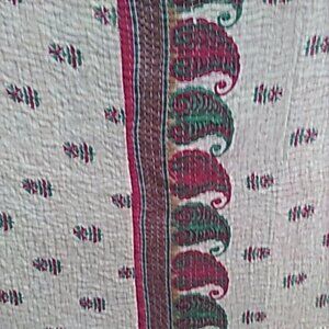 Kantha 3 layer Quilt Christmas Red Green Paisley 53" x 85" Pre-washed Reversible Cotton K13.