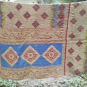 Kantha Quilt Red With Women 56" x 83" Cotton Patchwork Reversible Handmade K5.
