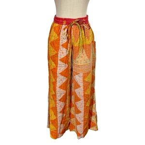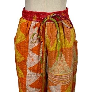 Kantha Wide Leg Drawstring Pull On Pants Handmade Boho Patchwork