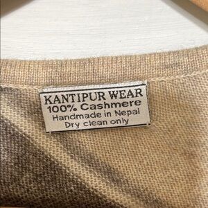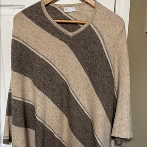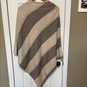 Luxurious cashmere poncho in beige and brown. Handmade in Nepal.