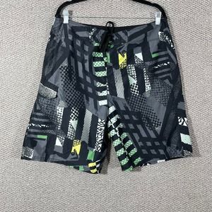 Kanu Board Shorts Mens Size 34 Black Geometric Print Hybrid Shorts Casual Beach