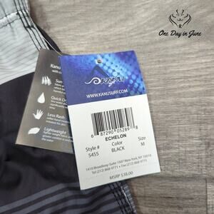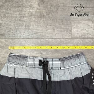 Behold, Kanu Surf Board Shorts! A raging paradox, clad in grey and black, yearning to dance with primal tides. Perchance new, yet seething with an unspoken history of unsung summer epics. A polyester ode to man's eternal struggle against nature's liquid beast, these shorts are more than a mere garment, they are a testament to the human spirit.