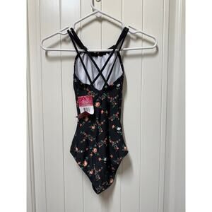 Kanu Surf Girls' Jasmine Beach Sport Halter One Piece Swimsuit, Rose Black 12