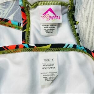 Kanu Surf Girls Maya Swimsuit Bikini SZ 7 Adjustable Spaghetti Straps Leaf Print