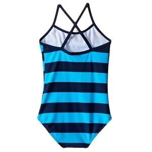 Kanu Surf Girls’ Turquoise And Navy Stripe One Piece Swimsuit, Size 4 (Girls)