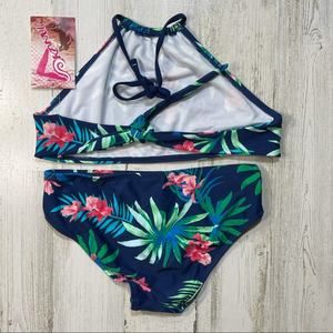 Kanu Surf Leonie Girls SZ 14 Floral Tie Halter Bikini Set 2-Piece Navy Blue New