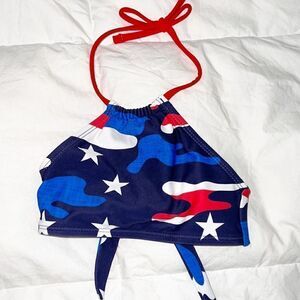 Kanu Surf Red White & Blue, Stars and Camo Halter Top with solid Blue bottom Bikini (2 piece) for Baby Girl size 2T PRODUCT DETAILS