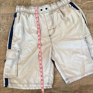 Kanu Surf Tan and Blue Swim Trunks with Elastic Waistband