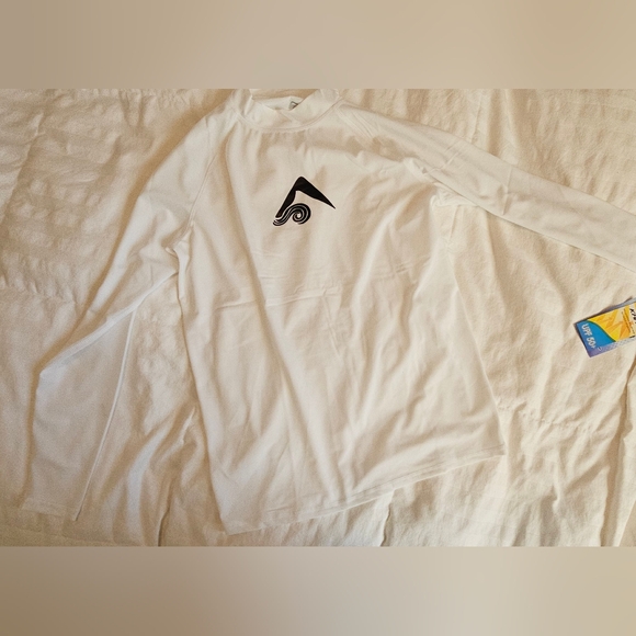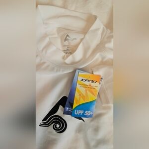 Men's swim rash guard by Kanu Surf. Features a sleek design with a wave logo. Perfect for water activities.