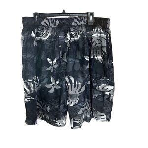 Kanu Surf XXL Swim Trunks Black White Tropical Print