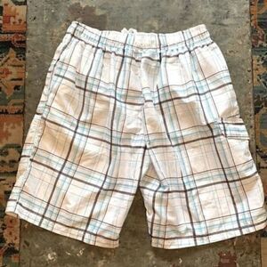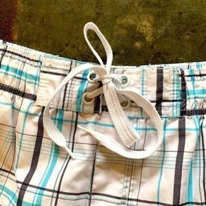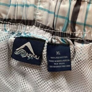 Kanu Surf Swim Trunks Size XL in excellent condition. White with blue and grey plaid.